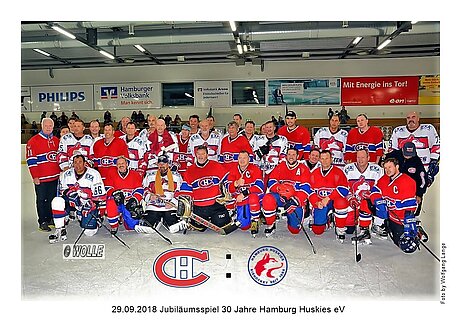 Am 29.09.2018 traten die Huskies, zu ihrem Jubiläumsspiel in der Volksbank Arena Hamburg, gegen die kanadische Auswahlmannschaft Les Anciens Canadiens aus Montreal an. Der Trainer der Kanadier ist kein geringerer als der vierfache Stanley Cup Gewinner Yvon Lambert.