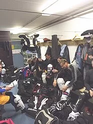 Unten den bekannten Bedingungen der kleinen Eisfläche standen folgende Trainingsinhalte im Vordergrund; das Spiel mit und über die Bande sowie das Verhalten der Angreifer und Verteidiger direkt vor dem Goalie.